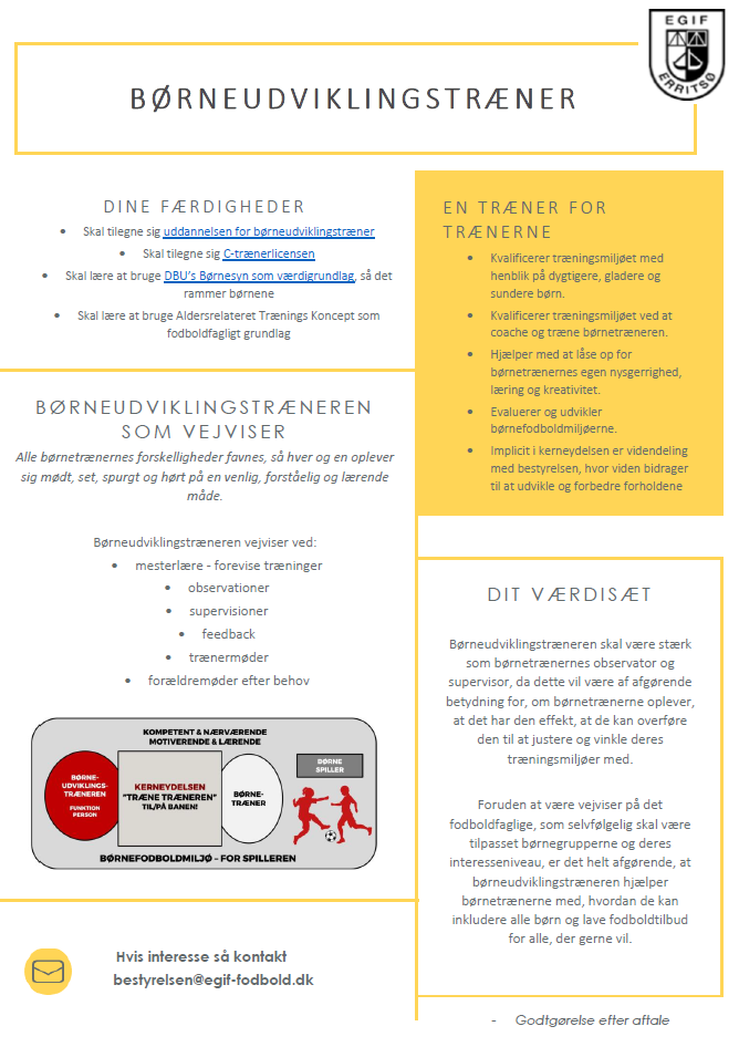EGIF Fodbold er i rivende udvikling og for at sikre den fortsatte udvikling søger vi en børneudviklingstræner.